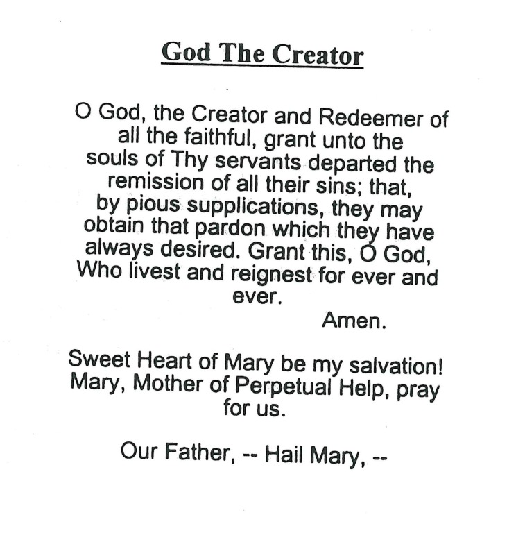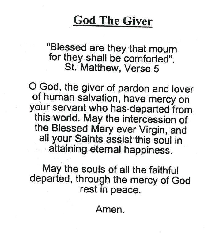 Prayer Card Text